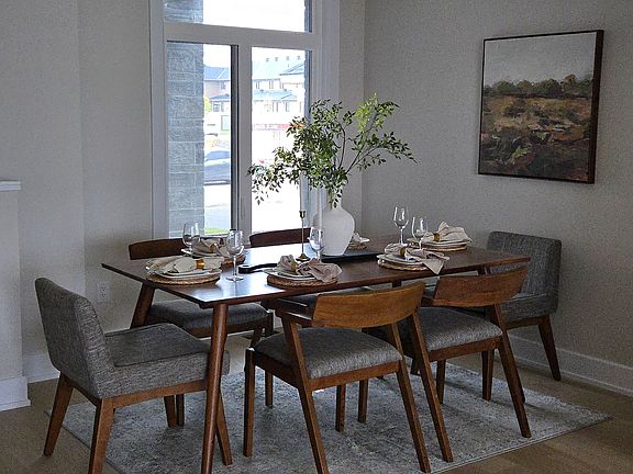 Welcome to this brand new, end-unit townhome offering 3 bedrooms and 2.5 bathrooms, perfectly designed for modern living. Backing onto a serene pond with no rear neighbours, this move-in ready home combines style, comfort, and function. The open-concept main level features a spacious dining area and a stylish kitchen with a large island and breakfast bar, seamlessly flowing into the bright living area. A powder room and access to the rear yard with a wood deck complete this level. Upstairs, the large family room with a cozy gas fireplace is the perfect gathering spot. The primary bedroom includes a walk-in closet and 4-piece ensuite, while two additional bedrooms, a full bathroom, and convenient laundry complete the second floor. The finished lower level with a walk-out provides versatile living space for a home office, rec room, or gym. Don't miss your chance to view this move-in ready home!