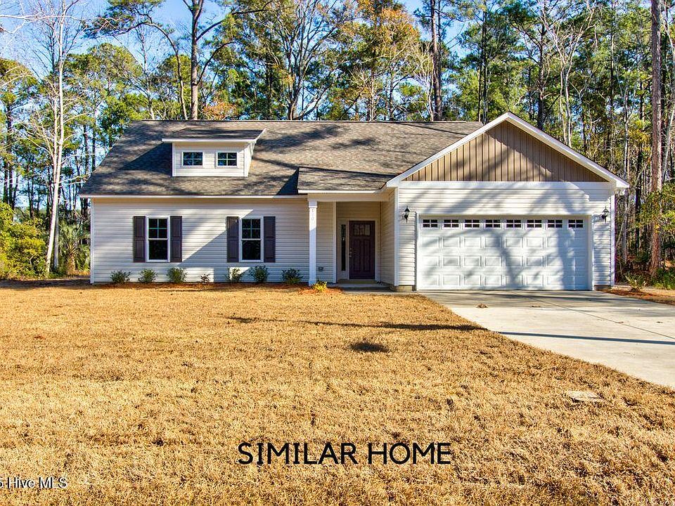 The Southport Plan by Atrium Homes is sure to capture your attention! Light, bright, and open, this home also has a very social living area. This new construction 3 bedroom, 2 bathroom single family sits on a .83 acre lot. Set to be completed end of May 2025. It has a finished two car garage, a large open kitchen with white cabinetry, breakfast bar, granite countertops, pantry, stainless steel appliances, and a separate laundry area. LVP flooring throughout. Carpet in the guest bedrooms, ceiling fans in the living area and primary bedroom. Primary bedroom has double raised vanity with cultured marble counters and step in tiled shower. Guest bathroom has a shower/tub combo and marble surface vanity top. Located very close to South Carolina/North Carolina border. Come take a look at this excellent new construction property.