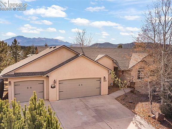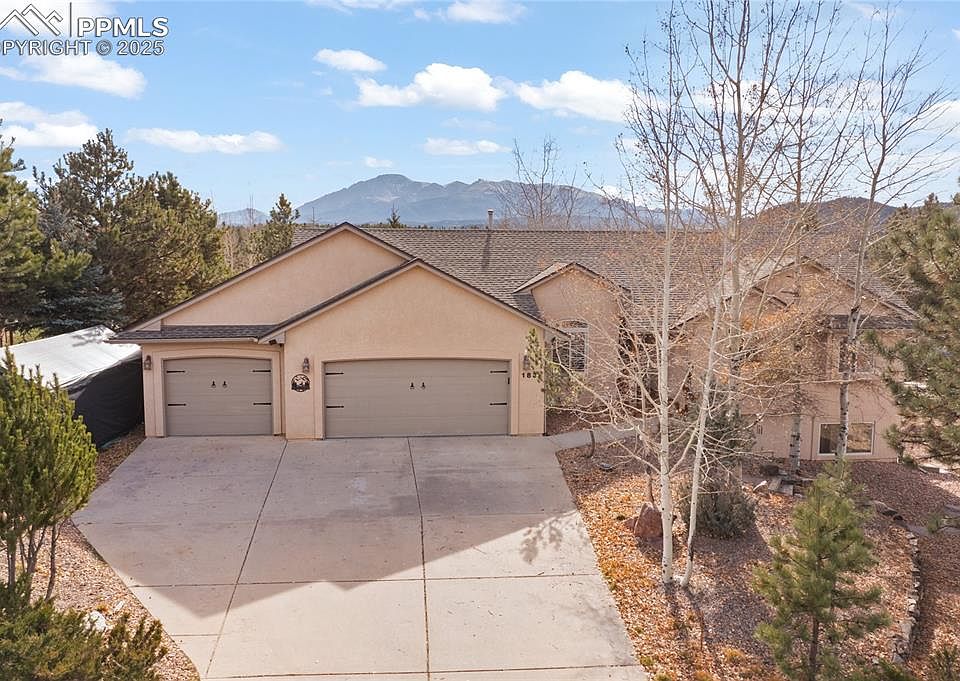 Welcome to your modern mountain retreat in the heart of Woodland Park! This beautifully updated 5-bed, 3-bath home sits on a peaceful, tree-lined lot with stunning Pikes Peak views, a fully landscaped backyard, and ideal access to the very best of mountain living. Just minutes from Woodland Park schools, national forest access, hiking and biking trails, Memorial Park, shopping, and downtown, this home blends serenity with convenience. Inside, the main level features 9-ft ceilings, rich hardwood floors, and an open-concept layout anchored by a double-sided gas fireplace shared between the living room and the gourmet kitchen. New interior paint throughout. The kitchen showcases refinished cabinetry, granite counters, gas range, stainless appliances, and a walkout to the deck overlooking the backyard oasis. Three bedrooms are located on the main level, including the spacious primary suite with a luxurious 5-piece bath, dual vanities, stand-alone shower, and soaking tub. The lower level expands your living possibilities with a second fully renovated kitchen, gas range, stainless appliances, large family room, two additional bedrooms, and its own laundry room—perfect for multigenerational living, long-term guests, or rental potential. Step outside to an incredible fenced backyard featuring a pergola, deck, fire pit, mature aspens and pines, and breathtaking mountain views in every direction. The home also includes a large 3-car garage, durable stucco exterior, and a heated gutter system to keep winter maintenance easy. With two laundry rooms (one with gas and electric hookups), thoughtfully updated finishes, and unparalleled outdoor beauty, this home embodies comfort, functionality, and Colorado mountain charm.