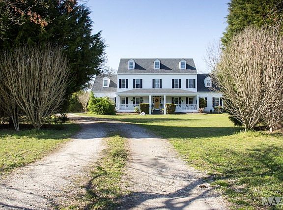 Come home to Southern Living on over 5 acres of beautiful green property secluded off the beaten path but close enough to Hwy 17 North to South in this 4 + 1 bedroom home, and 3 full bath + 1 bath ( with guest house over two car garage detached) and 1 car garage attached totaling three car garage. Home has updated features in kitchen, roof, HVAC since built in 1993. Solid surface granite counter tops in kitchen, 150 year old wood floors, large rooms with high ceilings make this residence a grand home to entertain in. Three zone HVAC. Three levels. Less than 30 minutes to Chesapeake Va!