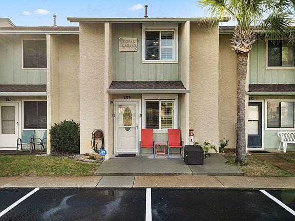 CURRENTLY UNDER CONTRACT, SELLER ACCEPTING BACKUP OFFERS Fantastic townhome just across from the heated pool and shuffleboards. This home has been upgraded and renovated! plantation shutters, new front door, hurricane shutters,hvac-3 yrs old,new windows and more! no other home has such a nice covered patio for entertaining and relaxing! Kitchen has a moveable island and new countertops. lots of cabinet space! 3 bedrooms with an office space or bunk area. 2 baths upstairs &1/2 bath down. storage area! lots of upgrades to this awesome home! short term rentals are allowed. gulf front pool, tennis courts, mini golf and more amenities than most any other on the beach. this unit will be a great home or rental unit. its a must see!!