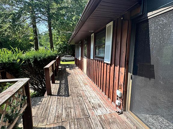 USDA ELIGIBLE! Very desirable location on 2.25 acres that is located between Crooked lake & Glass Lake! Amazing private backyard perfect for a little entertaining, hiking, riding- with extra outside buildings. Perfect for another garage, work area, or even a he/she shed, that backs to the woods for privacy. Relax in the cozy 3 season room or the partial wrap around deck. Adorable living space with fire place that heats up the entire house. House needs some updating & TLC so come with your imagination & make it your very own cozy retreat of a home.
