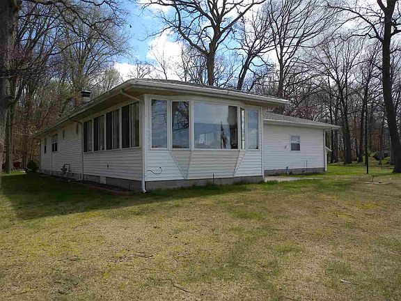 This 85 ft +- prime Dewart lakefront property is ready and waiting for your seasonal or year-round enjoyment. Every new day will provide beauty and wildlife galore with views of the lake from windows in 3 directions providing delight in every sunrise and sunset. This 1588 sq ft +- home boasts custom oak cabinets from Nappanee, and many updates: new alarm system, 2006; new water softener & toilet, 2010; new laminate, 2012, new inlet irrigation filter, 2013; new well pump, 2014. Property includes lot and 816 sq ft +- additional detached garage across private lane (new metal roof, 2014) to store all the lake toys. Wonderful, peaceful area with private lane providing very limited traffic.
