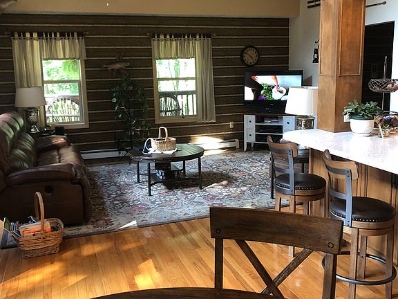 Nice country setting on private road but only minutes from town. Relax on the wrap around deck or at the pond with pavilion and fire pit. Open concept kitchen/dining/living room. New kitchen area installed 2017. First floor laundry. All appliances included. Large master bedroom on second floor with walk in closet and full bathroom with jetted tub. Second floor also includes nice sized loft/office area. Two bedrooms on first floor with nice closet space. Full bath on first floor. Basement/integral garage has full bath. 3 springfed trout ponds on property. Nice sized barn/garage on site with multiple possibilities.