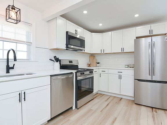 • Features: Flooring - Vinyl, Cabinets - Upgraded, Recessed Lighting, Remodeled, Stainless Steel Appliances, Gas Stove, Lighting - Pendant, Lighting - Overhead