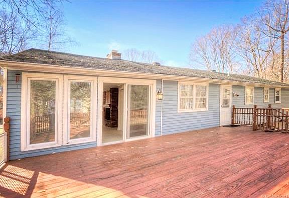 Pristine expanded ranch on a level acre in a terrific neighborhood. Crisp and Clean throughout w/gleaming hardwood floors - all refinished last week! Large family room on main level w/storage closets and second fireplace. Sliders to huge 30x14ft deck - wonderful for entertaining. 3 large bedrooms, master w/attached 1/2 bath. Finished lower level w/new tile flooring; A great space for a home office or playroom. BRAND NEW full roof, windows, gorgeous designer kitchen, Top-of-the-line water purification system, newer furnace and 2 car garage. Only 2 miles from Guilford town and close to the Madison border. Move right in and enjoy one-level living!