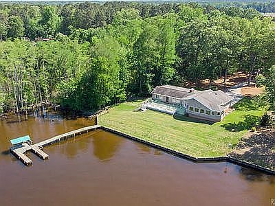 3.5 Acres on Perquimans River. 2654 SF living area + 860 SF heated basement (game room).