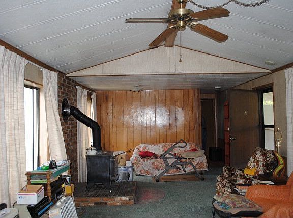 Flat, irrigated pasture land near town with good views of the valley. Trailer has porches and is roofed. Could also be a good location to just build a home on the land. Septic and well are working and in place on land. There is a good chicken house and pump house as well. The mobile home is 14 X 66 ft. There are two add ons that bring it to the 1182 Sq.ft. The front covered porch is 9 X 25 ft. The trailer has 6 inch insulated walls and T-11 siding. The ceiling in living room and kitchen are raised cathedral and generally the inside of trailer is in good condition. It has an electric furnace besides the wood stove. There are ten fruit trees and a large garden area.