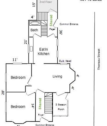 SHOWINGS BY APPOINTMENT ONLY: Easy in-town living two bed/1 bath apartment on first floor in heart of historic Concord. Walk-to-everything: train, schools, stores, library, playing fields, and much more. Private laundry with washer/dryer. Ample basement space. Large yard, one garage bay, and off-street parking. Rent includes lawn maintenance and snow removal. First month, last month and security required. Pet considered but requires owner approval. Owner pays for water/sewer, lawn maintenance, plowing driveway. Owner also responsible for annual boiler maintenance, chimney cleaning, and semi-annual pest control (exterior). Tenant pays electric, oil, cable. NO SMOKING indoors.