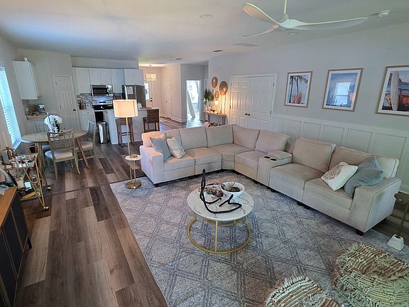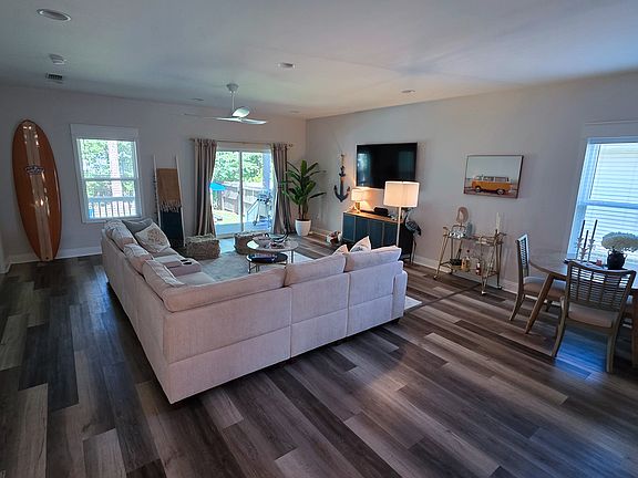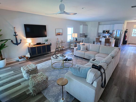 This charming and meticulously maintained 3-bedroom, 2-bath home offers the perfect balance of comfort and convenience. Inside, you'll find an open-concept floor plan with a spacious modern kitchen, cozy living room with board and batten detail, and a huge sectional perfect for relaxing after a day at the beach.