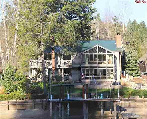 Waterfront home, dock w/canvas, swim platform, sandy beach, heated workshop & 102' of shoreline! Two masters on the main level , hardwood floors, floor to ceiling fireplaces on each level, kitchen w/hickory cabinets, forced air heat & A.C., slate & tile accents. Family room kitchenette for guests. Waterfront living w/2 level sunroom (operable windows), decks for enjoying outdoor living. A terrific 25+ GPM well, filed water rights, landscaped beautifully & great location w/easy access, close to Sandpoint &