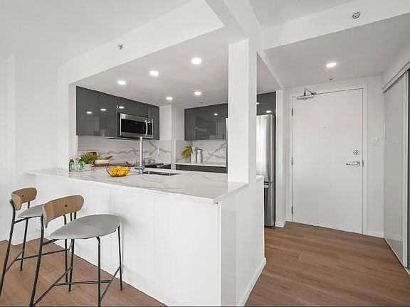 Stunning view 2 bed, 2 bath with solarium spacious newly renovated unfurnished apartment for rent! Our exquisitely newly renovated 24th floor unit has almost 2000 square feet with panoramic view of False Creek, Rogers Arena and downtown! Our spacious unit has high-end and modern design with open concept, all new appliances: fridge, dishwasher, microwave, etc. and plenty of cabinet storage space! Our condo is centrally located within steps from Skytrain station, Rogers Arena, BC Place stadium, and within walking distance to downtown. Rent payment includes gas heat paid by the owner. Renter is responsible for electricity. Last month's rent due at signing. Only one small pet allowed i.e. either one dog or one cat.