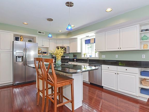 Thoughtfully designed Custom Colonial sitting proudly on .47 acres of fenced-in spacious lawn w/pool & mature foliage w/gate opening to Wintergreen Woods neighborhood. Welcoming 62-foot-long Farmer’s Porch. Gleaming hardwood cherry floors throughout 1st Floor. Large Chef’s Kitchen w/abundant cabinets & granite counter space, 6-ft island & SS appliances. Dining Area w/slider to 40-ft back deck w/gazebo & lower patio taking the entertaining outside. Sun-filled Living Room. Be pleasantly surprised by 26x24 ft cathedral ceiling Family Room w/separate entrances perfect for 1st floor Primary, In-Law Suite, or your largest family gatherings. Custom-built Home Office & Full Bath complete the 1st floor. 2nd floor boasts front to back cathedral Primary Bedroom w/skylight, walk-in closet & granite vanity in Bathroom. 3 more spacious Bedrooms & Full Bathroom. Endless list of updates including new roof & deck. Walk-out basement, plenty of storage & 2 car-garage. Central to shopping highways & train