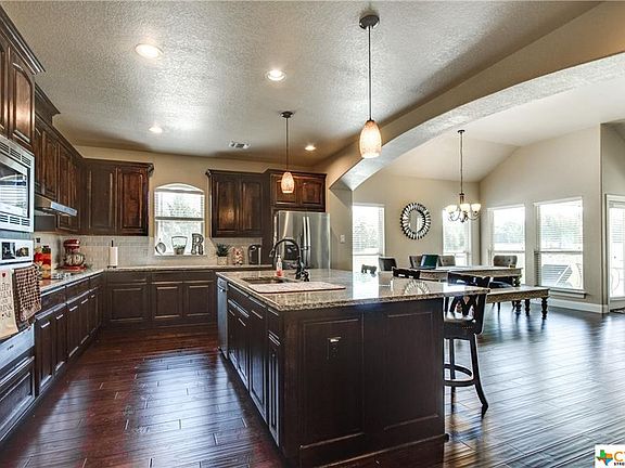 • Kitchen Features: Breakfast Area, Breakfast Bar, Ice Maker Connection, Pantry, Island, Cook Top, Custom Cabinets, Solid Counter Tops, Built-In Oven, Disposal, Gas, Double Ovens, Walk_in Pantry, Eat in Kitchen, Center Island, Open to Family Room, Granite Counter Top
