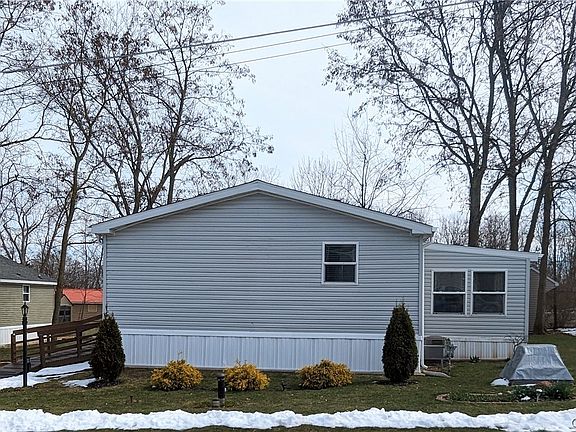 FINALLY! Affordable, single-story living! This 3 bedroom, 2 full bath home has a split bedroom design and a primary bedroom with en suite bath and walk-in closet. Vaulted ceilings and an open floor plan with a large, bright kitchen. You'll love the convenient laundry room right off the kitchen and the bonus 4 season room addition. Large shed to accommodate all your outdoor items. Covered patio has canvas screen enclosure that stays too! This home includes: all appliances, ALL FURNITURE (except trunk in primary bedroom and a few other items), snow-blower, lawnmower, outside furniture and cushions, lamps, dishes, bakeware/cookware, silverware, glasses- like everything! Bed in primary is adjustable bed with tons of features too! Interested buyers must get approval from park management prior to having an offer accepted. Cost to buyer to apply is $100. Park rules and info are attached. All buyers must provide PROOF OF FUNDS prior to having showing request accepted. CASH ONLY.