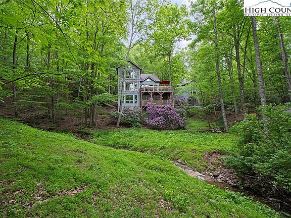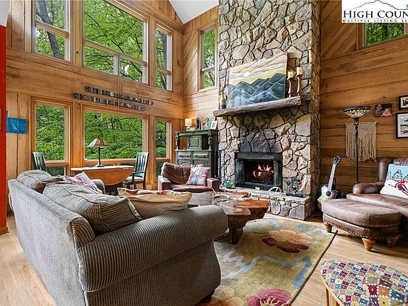 Prepare to be captivated by this super special and incredibly unique mountain sanctuary nestled within the coveted Yonahlossee subdivision. Beautifully immersed in a truly magical and enchanted setting amidst old-growth rhododendrons and the natural splendor of the Blue Ridge Mountains, this gorgeous property is offered completely furnished and 100% turnkey. The location is unparalleled, providing fantastic access to all awesome High Country amenities, including incredible hiking trails, the Mountains-to-Sea Trail, Moses Cone Manor, minutes to the Blue Ridge Parkway, and walking distance to the renowned Gamekeeper Restaurant. It’s also just a ten-minute drive to the fabulous shops and restaurants of quaint downtown Blowing Rock and only fifteen minutes to historic downtown Boone. Within Yonahlossee, residents enjoy fantastic on-site amenities including the club, pool, workout room, and excellent tennis courts. The fabulous POA provides exterior and grounds maintenance, making this an ideal primary residence, a perfect second home, or a lucrative short-term rental investment without the worry of yard work. Step inside to an interior that is truly set apart, featuring soaring cathedral ceilings in the living room anchored by a stunning floor-to-ceiling stone fireplace with a cozy and convenient propane gas insert. The artistic, colorful flare throughout this lovely home will keep you enchanted around every corner, highlighted by custom mosaic art installations that make this property one-of-a-kind. Huge windows flood the open spaces with natural light, complementing a fantastic, flexible layout that includes a full bath on every floor. The upper level is a magnificent Primary Suite, while the main level also features a bedroom with an en-suite bath, providing a superb option for a second primary suite. The walk-out lower level offers a private exterior entrance and a full bath, easily allowing it to be set up as a whole private floor for guests. Relaxation is assured with a luxurious hot tub perfect for enjoying cool mountain evenings. Significant recent investment means that over half of the home's siding and windows have been completely replaced with new, high-quality materials, providing a virtually like-new exterior envelope and immediate savings on future capital expenses, with all work completed to the highest standards of craftsmanship. This house has everything necessary to be a comfortable, fabulous full-time or second home residence and a fantastic spot for short-term rentals. Note the photos were taken this past spring, and while some furnishings differ, 100% of the furniture and furnishings currently in the home all convey! Prepare to fall in love with this one-of-a-kind gorgeous home in a truly picturesque setting!
