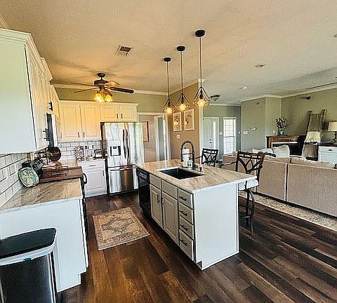 Southern comfort style located in the beautiful serene country. This 3 bedroom 2 bath home has all the charm and warmth you could want. Lovely open floor plan with a gorgeous covered patio. 2 car garage with additional 30x30 garage/workshop and added storage shed that complements the home. The property is 1 acre and the backyard is fenced.