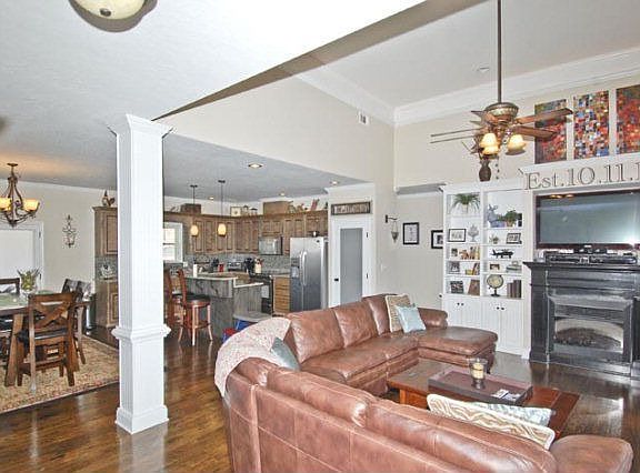 OPEN FLR PLAN, KITCHEN W/ISLAND, GLASS TILE BACKSPLASH & FROSTED PANTRY DR! HDWD & CERAMIC TILE FLRS, TRAY CEILINGS W/ACCENT LIGHTING, FP W/LOTS OF BUILT-INS W/TV NOOK PLUS SO MUCH MORE. BATHS W/ CUSTOM MIRRORS, HIGH-END FIXTURES, PLUS MASTER W/2 VANITIES, TUB, SEP SHOWER & SEPARATE WATER CLOSET! COVERED FRONT & BACK PORCHES PLUS LG DECK, YD LANDSCAPED & FENCED BKYD, STORAGE BLDG & CONCRETE PAD!