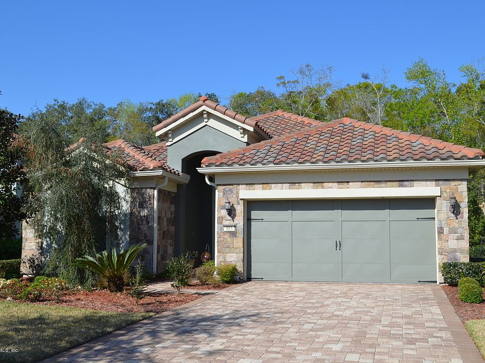 Located on a preserve view lot in gated 55+ age restricted Del Webb Ponte Vedra in Nocatee. This tile roof Cypress model has 1,860 sft w/2 bedrooms + den + screened lanai and of course, unlike a new build, is block construction with storm room included. Granite counter tops, wired for surround sound,high ceilings, water softener system, driveway pavers on one of our finest streets....and the outstanding Anastasia Club are all yours! Owners also enjoy the use of the Nocatee Splash Park, trails, walking paths and dog parks. Nocatee is a golf cart community! 10 minutes from toes in the water in Ponte Vedra Beach. (Curtains DNS)