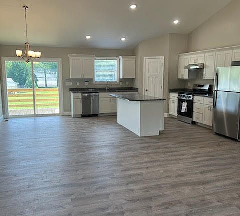 Gorgeous NEW CONSTRUCTION. Beautiful, open and useful Ranch floor plan with large back partially covered deck. 3 bedrooms and 2 full baths with a large open living area. Split bedrooms. High end finishes including luxury vinyl flooring and tile in wet areas as well as granite counters in kitchen and baths. Beautiful kitchen with large pantry and plenty of cabinet space. All brand new appliances. Separate large laundry room. Ventless Gas Fireplace with stack