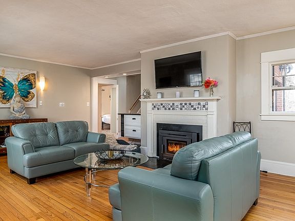 WONDERFUL CURB APPEAL & CHARM GALORE, this brick cape is centrally located in quaint, tree lined neighborhood. Home boasts great living space plus large storage shed w/electricity & private lot abutting glen. Generous living room welcomes w/new wood stove insert, custom built ins, hardwood floors- all open to updated, eat in kitchen. Kitchen showcases white painted wood cabinetry w/satin nickel pulls, open shelving, glass floating shelves, tiled backsplash, black granite tops, new Andersen Arts-N-Crafts slider & windows plus stainless appliances including new fridge & Bosch dishwasher. Two 1st floor bedrooms w/hardwoods & closets plus updated full bath w/new tile flooring & painted vanity complete living space. 2nd floor features primary suite w/large walk in closet & tiled full bath plus 4th bedroom and/or home office. Lower level has tall ceilings & plenty of storage. Brand new roof & gutters, new ductless mini-split for primary suite & newer hot water heater provide peace of mind.