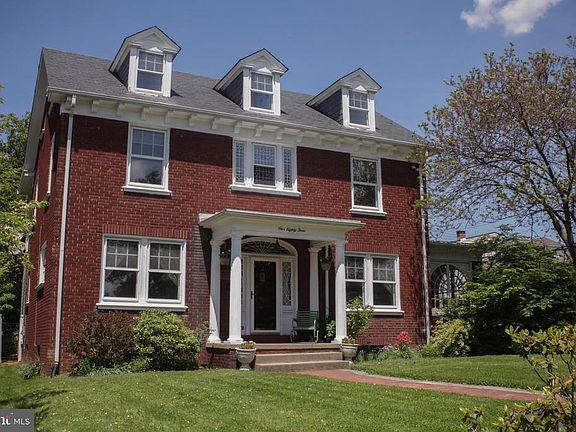 This spacious, brick Colonial is located in the idyllic neighborhood of Springdale. Built in 1930, this home has stayed the course with a sturdy slate roof and hardwood floors throughout. It features a modernized kitchen with quartz countertops, ceramic tile flooring, and a bay window near the breakfast area. The separate dining room is big enough for the whole family. Crown molding and a pass-through window to the kitchen exemplify the many architectural details that make this home shine. The living room is cozy in winter with its wood-burning fireplace and opens to the beautiful windows of the adjacent sun room. The second story has the master bedroom, an updated full bathroom, and two additional bedrooms. The rear bedroom, which would also be enjoyable as an office or library space, has access to a covered porch overlooking the ornamental pond (complete with fish) and garden in the fenced back yard. In the finished attic, there are two bedrooms with a fully-renovated half bathroom in between. The recreation room in the basement is cable-ready for use as a theater room or family gaming area. This home also has convenient off-street parking in a detached, two-car garage. Great location; a scenic five-minute walk through a beautiful neighborhood to York Hospital or York College. A great place to call home! Schedule a private tour to explore all the wonderful features this home has to offer.