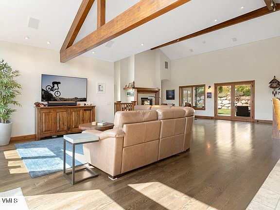 Beautiful residence with panoramic ski slope and valley views located on one of the most coveted streets in Singletree. No highway impact! Backing to open space and trails with a large, serene and private yard featuring poured concrete patio with a built in BBQ and inset for a hot tub. Enjoy breathtaking sunsets or daytime lounging on the upper level flagstone patio set above the backyard. Recent upgrades to the backyard include custom fencing along with a new retaining wall which allowed for a larger lawn area. Elegant finishes throughout with designer faucets and tile in the bathrooms and a gourmet kitchen with large island for entertaining or casual dining. Floor plan features two guest bedrooms on the lower level, family room, exercise room (potential bunk room or play room), large laundry room with kitchenette/wine refrigerator and an oversized 2-car garage with massive storage at the rear. The upstairs offers air conditioning throughout and features an open great room, dining area, kitchen with island bar, breakfast nook with south facing deck, primary suite and 4th bedroom (currently used as a game room). The fourth bedroom could easily be closed off with a sliding barn door. The bathroom for the 4th bedroom also serves as the powder room on the upper level. This bathroom features an elegant custom vanity, designer tile and a steam shower. The primary suite is spacious with vaulted ceilings, large custom walk-in closet, deck (connects to living room), fireplace and a 5-piece bath with views to the professionally landscaped yard. Conveniently located near a trailhead to the popular hiking and mountain biking trail system. Just minutes to the world class resorts of Vail and Beaver Creek and nearby all the amenities of the Sonnenalp Club including golf, pool, tennis, fitness and dining. Ownership in Singletree offers wonderful parks, and a community center with fitness room for the low dues of only $200/year. A unique and rare opportunity!