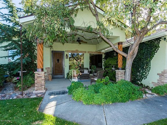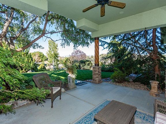 This lovely home has been meticulously maintained in a ''pride of ownership'' neighborhood with NO HOA! Wide driveway leads to a 3c garage and a wonderful covered front porch with vine covered walls and a fountain. Big shade trees, a lovely front yard and gorgeous curb appeal. Spacious living room with fireplace & vaulted ceilings. A sitting area off the 'island kitchen', granite countertops, and a delightful breakfast area. Three large windows w/ white plantation shutters look out to the wonderfully landscaped rear yard with 2 covered patios, fruit trees & waterfall. A non-smoking home & wheel chair/handicap accessible! NOTE: Listed as a 3BR, the home is presently a 2BR with den/office. If buyer prefers a 3BR, seller will convert office to a BR (with closet and door) prior to closing.