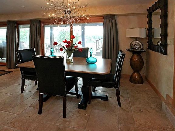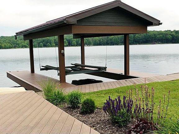 Gorgeous Upscale Waterfront Stone Home on Indian Lake. Beautifully Landscaped Level Lot; aggregate patio and walkway. Best value on the lake, this 6 BR, 5 Bath home offers superior quality and high grade finishes, it has too many to list. Open Kitchen to LR with high quality granite, stainless steel appliances, island, custom Granite Fireplace with raised hearth, Travertine flooring throughout and sculpted wall to wall carpet in BRs. Exquisite neutral décor for easy living. 2 story GR with custom crown molding and accent lighting with stunning views of lake; surround sound. Pella windows with custom window treatments; Private Master Ensuite, His/Her closets, wet bar; Guest Ensuite; 2 washer/dryers; Billiard Room with Wet Bar. 2 level Trex decking for morning and evening relaxation. Offers sun and fun with covered lakefront Trex decking and storage, covered boat lift, cantilevered dock; Long lasting metal roofing on house and out buildings; shed. The best of the best property!