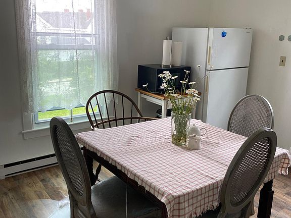 Spacious apartment downtown. Previously a vacation rental, now offered as a long term rental. 3 beds on the 3rd floor. One bathroom with bathtub and washer & dryer. On South Main St, just a few blocks from the YMCA, Archer's Restaurant, and the beach. Large backyard deck and shared backyard with lawn. Two off-street parking spaces. Newly renovated- entire apt painted, all flooring replaced and refinished. Wood and vinyl flooring. Fully furnished. Dog or cat considered for a fee and additional security deposit. No smokers. No exceptions. (Immediate termination of lease if found smoking anywhere on the premises). $1690 plus heat and electric. Water and sewer included. Plowing and lawn care included. References and credit check required to apply. First month and security required to move in. Baseboard electric heat in bedrooms, Rinnai propane heat in living room. This apartment is on the 2nd and 3rd floor. The bathroom is on the 2nd floor, the bedrooms are on the 3rd. This is a 4 unit building with one other 3-bedroom apartment and two 1-bedroom apartments. If interested, please email or text with information about yourself and your situation. The building is on the market, so it is offered month to month. Renter pays for electric, heat. Owner pays for plowing and trash. No smoking permitted on the property. Pets considered for a fee- but dogs must not be loud. References and credit check required.