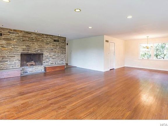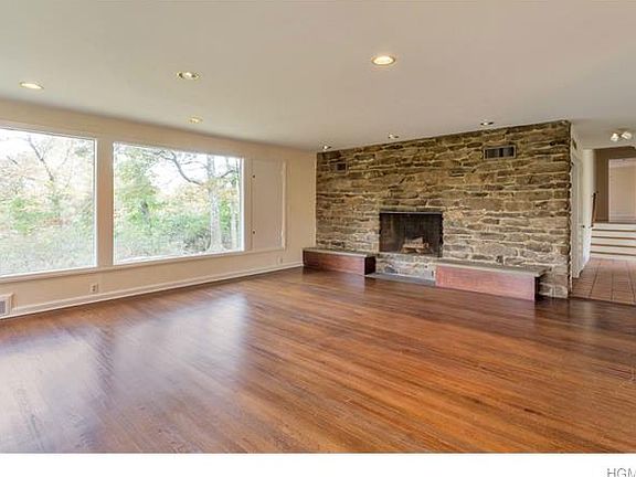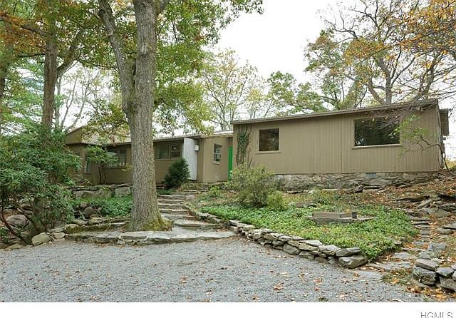 Elegant, sweeping property atop lovely the East Woods of Pound Ridge. Over 4 private old-growth acres studded with mountain laurel, rock outcroppings, open lawns--bathed in light from sunrise to sunset. At night, the glow of NYC is visible out over the treeline. This Pound Ridge mid-century gem was built in 1950 with 1970s touches and 2020 appliances. Inspired stone steps curve around oak tree upon entry. Spanish tile entry with original space bulb chandeliers. Panoramic windows in expansive Living Room with grand fieldstone fireplace wall. Open Dining Room. Heated Sun Room with skylights, ceiling fan, and flagstone floor, opens out onto back patio under wisteria arbor and overlooking back lawn and bird bath. Master bedroom with full bath and second bedroom or other (w/Mad Men wood panelling) with full bath...all with original details. Third and fourth rooms can be anything you want: bedroom, office, studio, playroom, etc., with half-bath in hall. Original refinished hardwood floors throughout. Heating & cooling on forced air system. Generator. Separate 2-car barn-like garage w/automatic doors. Old barn in woods.