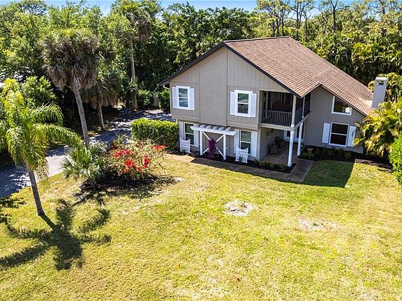 Fantastic opportunity to own a hidden gem in the highly desirable area of River Oaks in Palm River. This Mid-Century modern retreat was originally conceived and built by a builder as his personal residence. The house features soaring wood ceilings, a wood burning fireplace and three different outdoor sitting areas. All 4 Bedrooms are on the second floor with a separate loft/library and sitting area. The primary bedroom has a huge open-air deck overlooking the backyard and pool. There is an additional screened lanai accessible by two of the guest bedrooms. The backyard is truly an outdoor oasis featuring a huge pool, decking and an outdoor shower. The entire backyard is surrounded by lush landscaping and is completely fenced for privacy and safety. The entire yard is watered by a well. The large main lanai off the kitchen and family room features teak flooring and a kitchen passthrough. The oversized garage currently includes an air-conditioned office which could easily be converted back into additional garage space.
