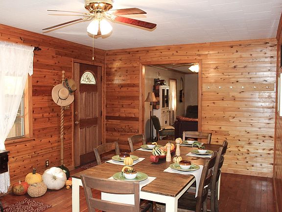 Log siding home with front porch, back deck, metal roof, and 8.41 acres of land. Wonderful year-round view of Chilhowee Mountain. Very private and secluded. Lots of room for children or grandchildren to roam. Mostly wooded. Home has an open concept with a very large kitchen, living room, and dining room. Kitchen has large wall convection oven and room for 2 refrigerators. Hardwood floors and ceramic tile, no carpet. Large master bedroom and bath with a claw foot tub for soaking and a shower attachment. Wood burning stove for heat. Window unit and ceiling fans for cooling. Fenced yard and coop for chickens (laying hens can stay if requested). Metal Mennonite-built storage building. Fruit trees. Handcrafted bathroom door does not convey. Very solid home that needs a few repairs and/or updates and is being sold as is. No repairs or changes will be made by seller.