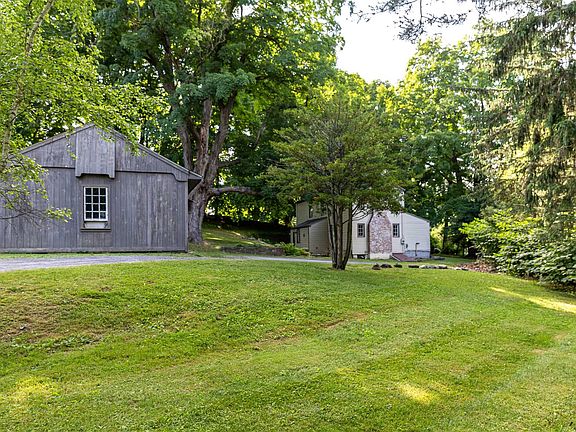 A three bedroom 19th century retreat on prestigious Quaker Hill. The private one acre lot is shaded by huge, centuries old sugar maple trees under which may have reposed Washington's soldiers who camped in the area. The original core of this post and beam home was erected in the 1860's. Evidence of the historical nature of this home can be seen in the wavy glass in the handmade windows. Over its long life it has been updated to grace the present day owner with the charm of the past enhanced with modern living conveniences. The first floor features hardwood flooring throughout with a large kitchen and dining room. A living room with an impressive fireplace has an adjoining office with built in desk, closet and cabinetry. A half bath, mudroom, and laundry complete the first level. Upstairs are three bedrooms and a full bath. The large master bedroom features windows on three sides. Above is a walk-up attic. The detached garage has incredible potential for studio space or workshop. Near the quaint Village of Pawling and the Pawling Metro-North train station.
