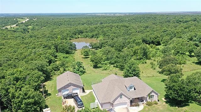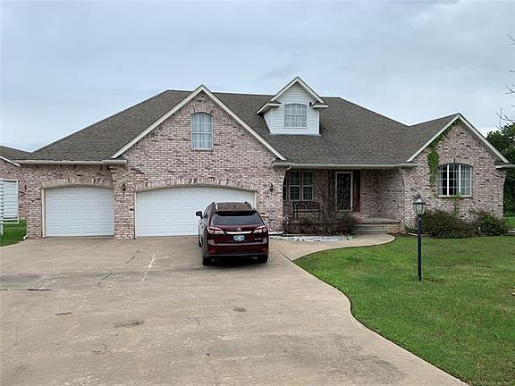 Now we're ready to show off! Clearing, cleaning and sprucing has been done on this full brick home on 3.5 acres (more av. on mls# 2115055) with expanded kitchen and dining adjoining living room. Lots of storage space in the home and room for ALL the toys in the 3 car garage and the full brick additional garage/shop(4 cars or boat AND motorhome). Very private property with a massive deck to watch the sunsets.