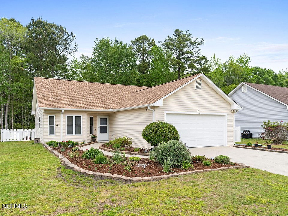 Relax in the ease of ONE LEVEL living with this charming 3 bedroom 2 full bath home now available in the tranquil surroundings of The Retreat neighborhood. Step into a home designed for convenience and comfort offering a split bedroom floor plan. The cathedral ceiling enhances the spaciousness of the living area, creating an inviting and airy atmosphere. Discover versatile flex space across from the kitchen, perfect for formal dining, a home office, or a cozy sitting room. Start your day with a cup of coffee or unwind with an evening beverage on the generous screened porch with patio area for grilling in the serenity of your fenced backyard. Additional highlights include a generator for added peace of mind, a new roof installed in 2020, an epoxy garage floor, and the convenience of no carpet throughout. Practical features such as a utility sink and exterior door in the garage and walk-in showers in both bathrooms elevate the functionality of this home. Conveniently located just a short drive away from the beaches, dining, and shopping options of North Myrtle Beach this home at an affordable price is a must see.