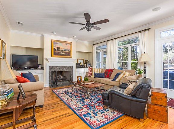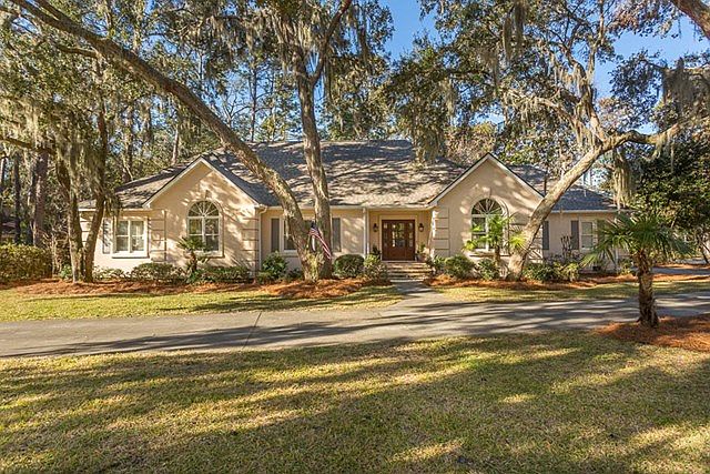 Looking for pristine? Newly listed, updated, one level home with a low maintenance stucco exterior. Home sits perfectly on .5 AC offering plenty of parking in the front w/ circular drive & 2 car garage. Backyard is private from both neighbors & has views of the 2nd green at King & Prince Golf Course from kitchen, great rm & master suite. Upon entering the home you are welcomed by a gracious open foyer that leads into the great rm and will immediately notice the newly refinished hardwood floors and all the natural light. Additional features; kitchen & baths have been renovated to offer granite & marble counter tops w/ white shaker style cabinetry, gas stove & f/p, master suite w/ large walk in closet, vaulted ceilings in formal dining rm, den/office and a large open deck w/ screen in porch.