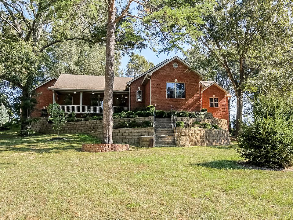 Here's your DREAM HOUSE in the PICTURE PERFECT SETTING! Sitting back off the road and thru the trees on a QUIET AND PEACEFUL CUL-DE-SAC, in a BEAUTIFUL NEIGHBORHOOD you'll find this CUSTOM BUILT (with quality in craftsmanship and attention to every detail) LOVELY GEOTHERMAL BRICK WALK-OUT RANCH home on 2.4 acres (Seller has documents showing total cost to build was $550,000 and it is just as good as or better than new, so at $389,000, This is a GREAT DEAL!!!) AS MUCH COMFORTABLE AS IT IS BEAUTIFUL! The "detached bonus garage" is actually A HANDYMAN'S DREAM it is a rather LARGE 24X40 ft, has 220/100 amp service, its own furnace and AC, built in work bench and peg board all the way around! Come on inside thru the LARGE COVERED EXPOSED AGGREGATE FRONT PORCH with a BEAUTIFUL VIEW and enter thru a UNIQUE STONE TILED ENTRYWAY to find a wonderful OPEN FLOOR PLAN! A GIGANTIC EAT-IN KITCHEN with CENTER ISLAND and an ABUNDANCE OF CUPBOARDS and COUNTERTOPS with BONUS DESK BUILT-IN AND TILE FLOORS, FORMAL DINING ROOM right off kitchen with TRAY CEILINGS, Large LAUNDRY ROOM right off kitchen leads out to garage, Spacious Master Suite has TRAY CEILING,VERY LARGE WALK-IN CLOSET, TILED SHOWER, WHIRLPOOL TUB, DOUBLE VANITY AND BONUS SIT DOWN MAKE-UP VANITY, the GREAT ROOM has FIREPLACE and GORGEOUS BRAZILIAN CHERRY HARDWOOD FLOORS THROUGHOUT, FRENCH DOORS to the BACK LARGE COVERED PORCH and is OPEN TO THE KITCHEN and FORMAL DINING ROOM. SPLIT BEDROOM FLOOR PLAN for PRIVACY, EXTRA WIDE CHERRY WOOD STAIRCASE with only a 6 1/4" step making it easier for anyone to handle their way to the FINISHED WALK-OUT BASEMENT with TILE FLOORS THEATRE ROOM, FAMILY ROOM, OFFICE, and VERY SPACIOUS FULL BATHROOM. Office could be transformed to a 4th bedroom if add a window and closet. French doors lead outside to PATIO. 2.5 ATTACHED GARAGE with TILE FLOORS! PLUS IT'S OWN BATHROOM & HEAT PUMP, quiet garage doors, and walks out to the back covered porch. Red square pavers make a beautiful walk-way to a wonderful swing out back. You really need to come try it out! WONDERFUL LANDSCAPING and many ASSORTED TREES (flowering, fruit, pine, etc). Seller is selling separately a tractor, zero turn mower, and RTV at a reasonable price to whoever buys this acreage as they go well with the property. Really too much to mention here!