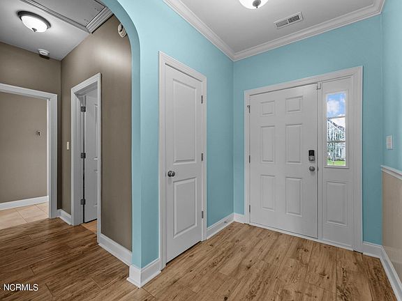 Welcome to your dream home in the sought-after Bluffs on New River community in Jacksonville, NC! This beautiful 3 bedroom, 2 bath home sits on a sprawling 1.5 acre lot, offering tranquility and ample space for outdoor activities. The Bluffs on New River community boasts two serene ponds, including a natural pond and a man-made pond stocked for fishing enthusiasts. Enjoy leisurely walks on the community's scenic walking trail, launch a small boat for a relaxing day on the water, or have a picnic at the picnic area. Inside, the home features a spacious living area with a cozy gas fireplace and large windows adorned with curtains that convey with the home. The tile floors throughout add a touch of elegance and are easy to maintain. The large laundry room provides convenience and extra storage space. The master bedroom is a true retreat with a walk-in closet and a luxurious master bath that includes a double vanity, large tub, walk-in shower, linen closet and water closet. The dining room, kitchen with a breakfast nook, and eat-in bar are perfect for family meals and entertaining guests. The kitchen is well-appointed with a tile backsplash, pantry, and a large kitchen sink. Step outside to the patio area with a covered back porch, ideal for enjoying the beautiful North Carolina weather. The pergola with raised garden beds and a charming windmill adds character and a touch of whimsy to the outdoor space. The garage is a handy homeowner's dream with built-in cabinets and separate attic storage accessible via pull-down stairs. The home is equipped with a whole-house generator for peace of mind during power outages. Additionally, there is a 12x30 studio shop with a mini-split system, built-in cabinets, counters, and storage shelves, providing the perfect space for hobbies or a home business. Don't miss out on this incredible opportunity to own a piece of paradise in the Bluffs on New river. Schedule your private showing today!