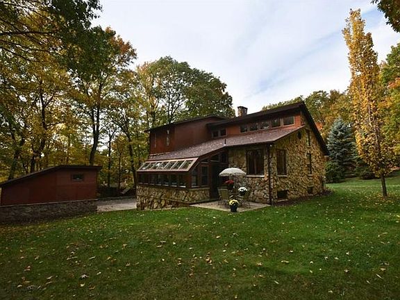 Marvelous Mountain Home! Just 5 miles from Seven Springs Mountain Resort. The exterior field stone was hand picked from the property with tongue and groove cedar complimenting the stone. Experience the outdoors on either deck or bring the outdoors in while relaxing in your Florida sun room. Enjoy a game of pool in the game room downstairs, relax in your California redwood sauna, or unwind in your indoor hot tub while star-gazing through the cathedral windows. Red oak beams & cathedral ceiling windows give the living room a warm and open feeling. The kitchen is equipped with newer stainless steel GE Profile appliances & cherry cabinets. Master bedroom and marble bathroom with new Ash wood cabinetry are located on the first floor. Newly installed hardwood floors accent the new solid wood Bali window coverings. The lower level laundry room boasts newer Maytag touch screen washer & dryer. Newly constructed outdoor storage building for outdoor equipment & sporting goods.