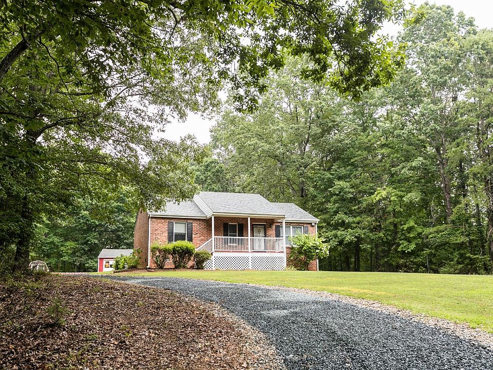 Located within 15 minutes to Lynchburg, down a picturesque curving driveway through hardwoods is this brick cottage on just over 5 acres! The perfect property for a single person, a starter family, or retirees. All one level living with low maintenance, hardwood floors, front porch, as well as a screened back porch perfect for relaxing and entertaining! Enjoy this private setting in the country and operate a side business with the 24x32 shop building with 2 overhead doors and a personnel door. Don't wait long! Real estate taxes +/- $735 annually.