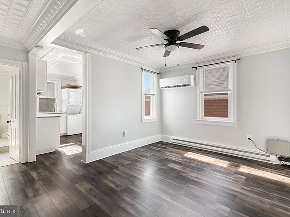 Welcome to this beautiful two bedroom, second floor apartment in the heart of Doylestown Borough! Completely renovated from top to bottom, this has it all! New granite kitchen with stainless steel appliances and a stunning backsplash. New bathroom with gorgeous tiled shower. Brand new flooring and nine new windows throughout overlooking South Main Street. A new ductless mini split unit has just been installed and it is highly efficient, great for the budget! There are ceiling fans in the large living space as well as the front bedroom. Washer and dryer in unit! In addition, this apartment has also just been freshly repainted, has a whole house water filter system and a water softener. Sitting just a block and a half away from the train station and close to public transportation. While this has been completely renovated, it has still maintained its original charm with the tin ceilings and large custom millwork. In addition to everything this has to offer, one car off street parking in a private lot is also included. Property available immediately, no pets allowed and no smoking on premises. This unit is approximately 750 sq feet. Front porch goes belongs to the first floor unit only. Criminal background check required. Must have proof of income and good credit. Trash, water and sewer included. Electric and internet/cable paid by renter.