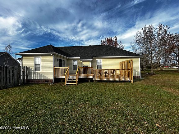 Beautifully maintained home in sought after Danson's Grant subdivision with lots of updates including newer roof, gutters, mature landscaping, expanded deck with additional support perfect for a hot tub. County water is connected while a well continues to add an additional supply for gardening, washing cars and other helpful outdoor activities. Inside the house has tile & plush carpeting, wood cabinets, stainless steel dishwasher & range, lots of storage with closets throughout including a double closet in the room over the garage and large floored attic space. The split floor plans offers a downstairs master with double vanities, soaking tub, walk in shower and oversized walk in closet. Double car attached garage provides plenty of space for two large vehicles plus room for storage. Great location, currently overlooking farm fields and yet less than 15 minutes to ELizabeth City, 30 minutes to the VA state line and 45 minutes to the Outer Banks.