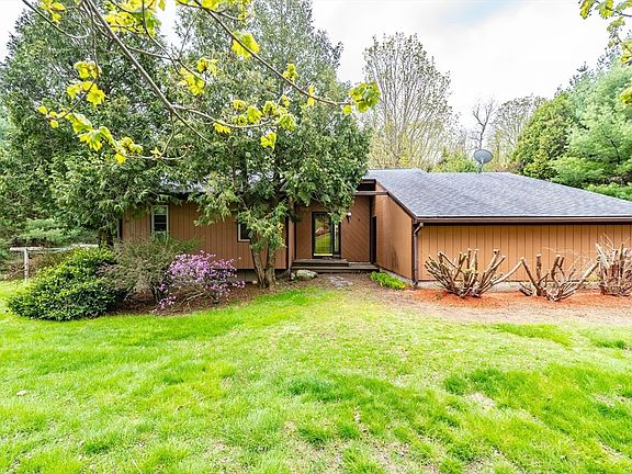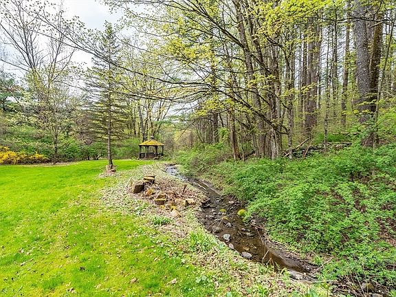 Own your own slice of heaven with this private and peaceful property. Built as a Contemporary Ranch, this spacious home feels light and airy, especially with it's vaulted ceilings and abundance of natural sunlight. The tiled entry hall is the center of the well thought-out floor plan. On the main level, there is well-equipped kitchen with lots of storage, open floor-plan living and dining rooms with hardwood floors, an over-sized master bedroom, updated full-bath, and a guest bedroom. On the lower level, there are three finished rooms, a workshop, and convenient laundry space. Outside, enjoy the serenity on a 400 sqft deck, which leads to the expansive and tranquil backyard, with an active stream and wooden gazebo. There are also two sheds and an attached two-car garage. Come see why so many people are moving to the "hilltowns" for a quieter way of life. Open House on Saturday 5/11 - 10am to 12pm.