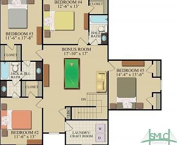 Welcome home to Konter Homes Camden plan! PICTURES ARE AN EXAMPLE OF THE SAME MODEL WITH DIFFERENT COLOR SELECTIONS AND DIFFERENT UPGRADES. This large 2-story open concept is perfect for a large or multigenerational family. The separate dining room and living room/office anchor the front portion of the home and a large family room opens to the kitchen, allowing you multiple entertaining options. The large open kitchen boasts a large island with raised bar top, stainless steel chef’s kitchen package, white cabinets with crown. The ground floor Owner's suite includes a large sitting area, large walk in closet & en-suite luxury bath with shower/separate garden tub. The 2nd floor opens up into a large loft/bonus room flanked by 4 BR's a Jack & Jill bath & hall bath. This exquisite home has laminate flooring, crown molding throughout, custom column detail, casing around windows/doors downstairs, marble bath tops, ceramic tile bathrooms, spray foam insulation/Earth Cents rated.