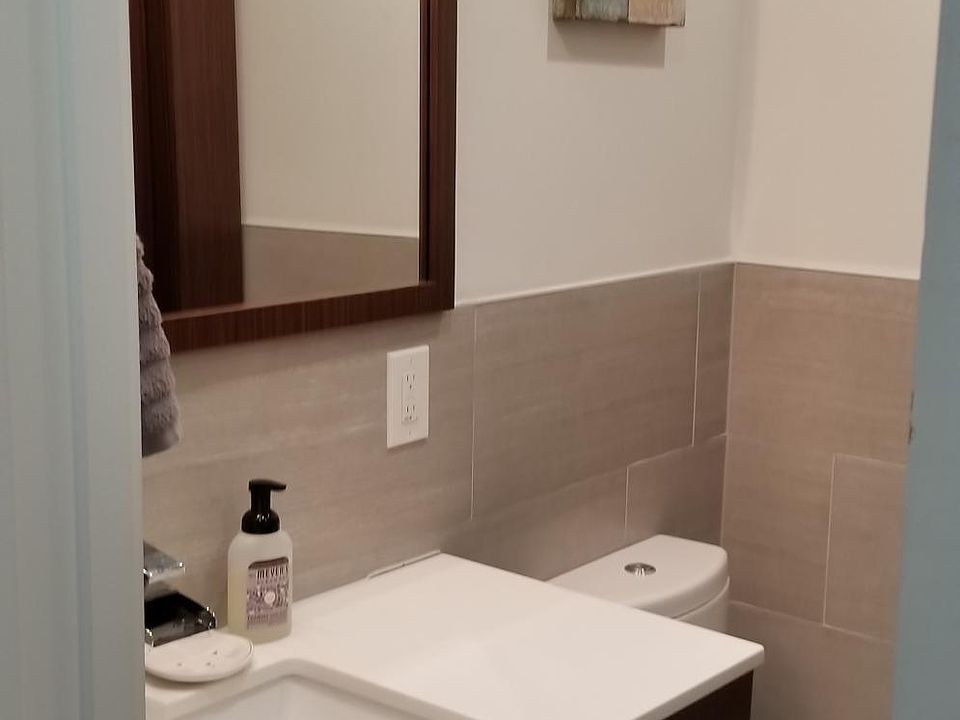 Fully renovated 1st floor apartment with access to basement and brand new backyard in a two family home. Three bedrooms and two bathrooms with washer and dryer in unit. Eat in kitchen with a cozy livingroom and door that leads to a brand new spacious backyard. Buses around the corner to NYC within 30 to 40 minutes. Shops, restaurants and more are walking distance. Please text to the number provided.