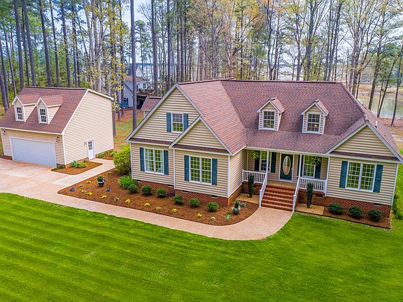 Relish the sweet views of the Rappahannock River from this beautifully landscaped waterfront home in the desirable Cedar Pointe Subdivision. Upon entering, the two-story foyer leads you to the living room with cathedral ceilings and French doors opening to an expansive deck, a perfect entertaining area with a tranquil river backdrop. The open concept design with hardwood floors throughout features a kitchen with granite countertops and SS appliances that flows to the dining area with gas FP. Wake up to water views from the spacious FF Primary bedroom, complete with ensuite and walk-in closet, an additional living area, bedroom & full bath on the main level will keep your guests comfortable. Upstairs, the generously sized bedrooms can hosts many friends. Detached double garage offers plenty of room for your golf cart, toys & potential bonus space above. Minutes away from shops & restaurants in the quaint town of Urbanna. Start living the river life!