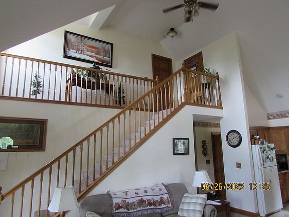 This Cape Cod home is situated on 67 acres in a very private setting.There are 3 bedrooms , 2 and ½ bathroom, finished basement with woodstove,,wrap around porch with stone skirting,LP Gas fireplace in living room with stone chimney, C/A, heat pump system, and detached garage. There’s also a aframe cabin 18’ x 22’ with a loft ’.There are 2 pole barn type buildings and a storage shed. The 67 acres is over ninety per cent wooded. There are hiking and ATV trails, food plots, tree stands and hunting boxes through out the property. You can sit on the front porch and watch the deer feed in the field next to the pond.