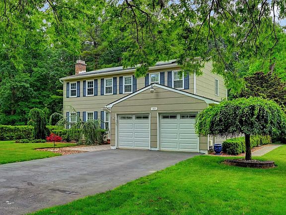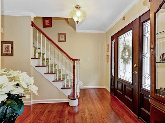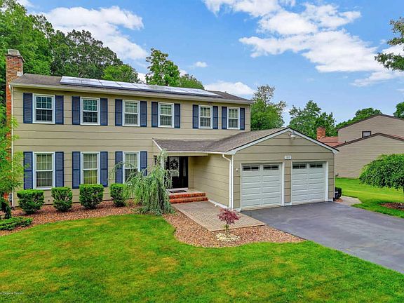 LOCATION, LOCATION, LOCATION, wonderful treelined street backing up to Green Acres. Extremely well maintained TURNKEY home. RENOVATED kitchen & all bathrooms , beautiful hardwood floors thru-out & neutral decor. Entertaining sized LR with fireplace & adjoining DR. The beautiful extended eat in kitchen accommodates a center island w/ granite counter tops, SS appl. & custom cabinets w/ crown molding. Opens to large FR w/ built in cabinets for storage and a TV. Slider to manicured yard & oversized paver block patio perfect for entertaining. Large MB w/ walk-in-closet & fabulous master bath w oversized glass enclosed shower. All BRs have lg closets & hwd floors. House is energy efficient w/ gas and solar panels. Loads of storage w/ finished basement, attic, 2 car garage & shed.