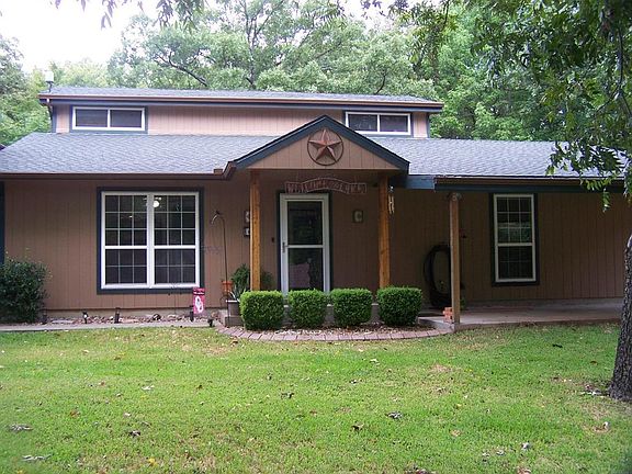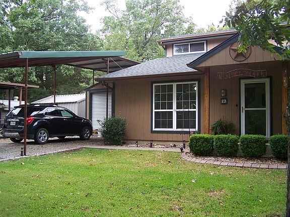 Just a short walk to the lake from this 4 bedroom home. Two bedrooms down and 2 bedrooms up. Large walk in closets. Laundry Room with additional pantry. Updated master bath with walk in shower. Stainless steel appliances. Windows replaced. Laminate wood flooring and ceramic tile downstairs. Original hardwood flooring upstairs. Backs up to Corp of Engineer land. Carport tall enough for a boat or RV. Storage building or workshop with electricity and roll up door. Landscaped front yard and large covered patio for outdoor entertaining.